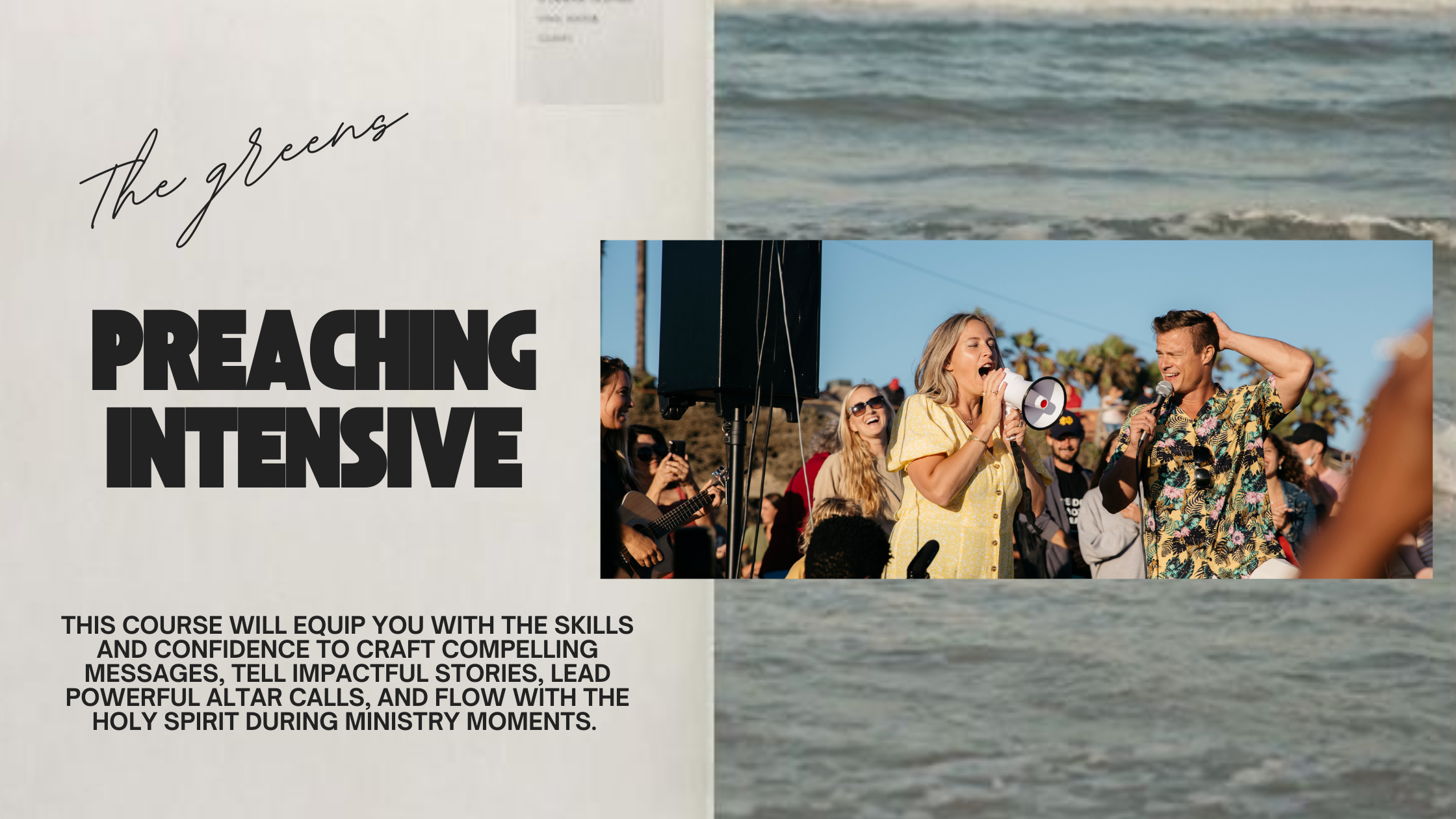 Join us for a transformational 4-week Preaching Intensive led by Parker and Jessi Green. This course will equip you with the skills and confidence to craft compelling messages, tell impactful stories, lead powerful altar calls, and flow with the Holy Spirit during ministry moments. Take your preaching to the next level and make a lasting impact on your audience. Enroll now to unlock your preaching potential!